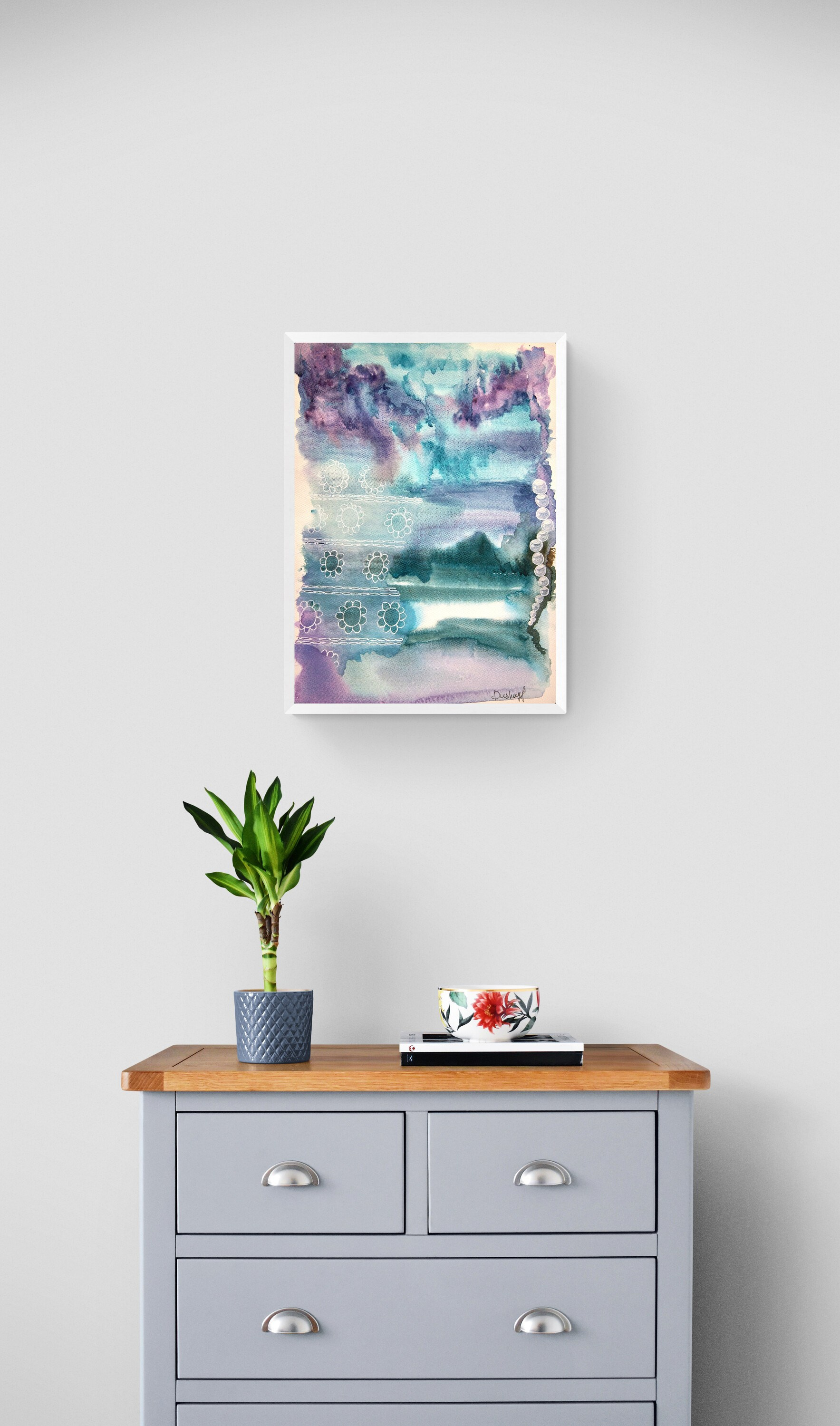 Минималистичная композиция наполняет пространство умиротворением, создавая визуальную паузу, где можно остановиться и вдохнуть глубже. Эта работа излучает баланс и внутреннюю гармонию, идеально подходит для интерьеров, предназначенных для отдыха, созерцания и вдохновения. Тонкие детали кружева и жемчуга придают композиции ощущение движения и воздушной гармонии.