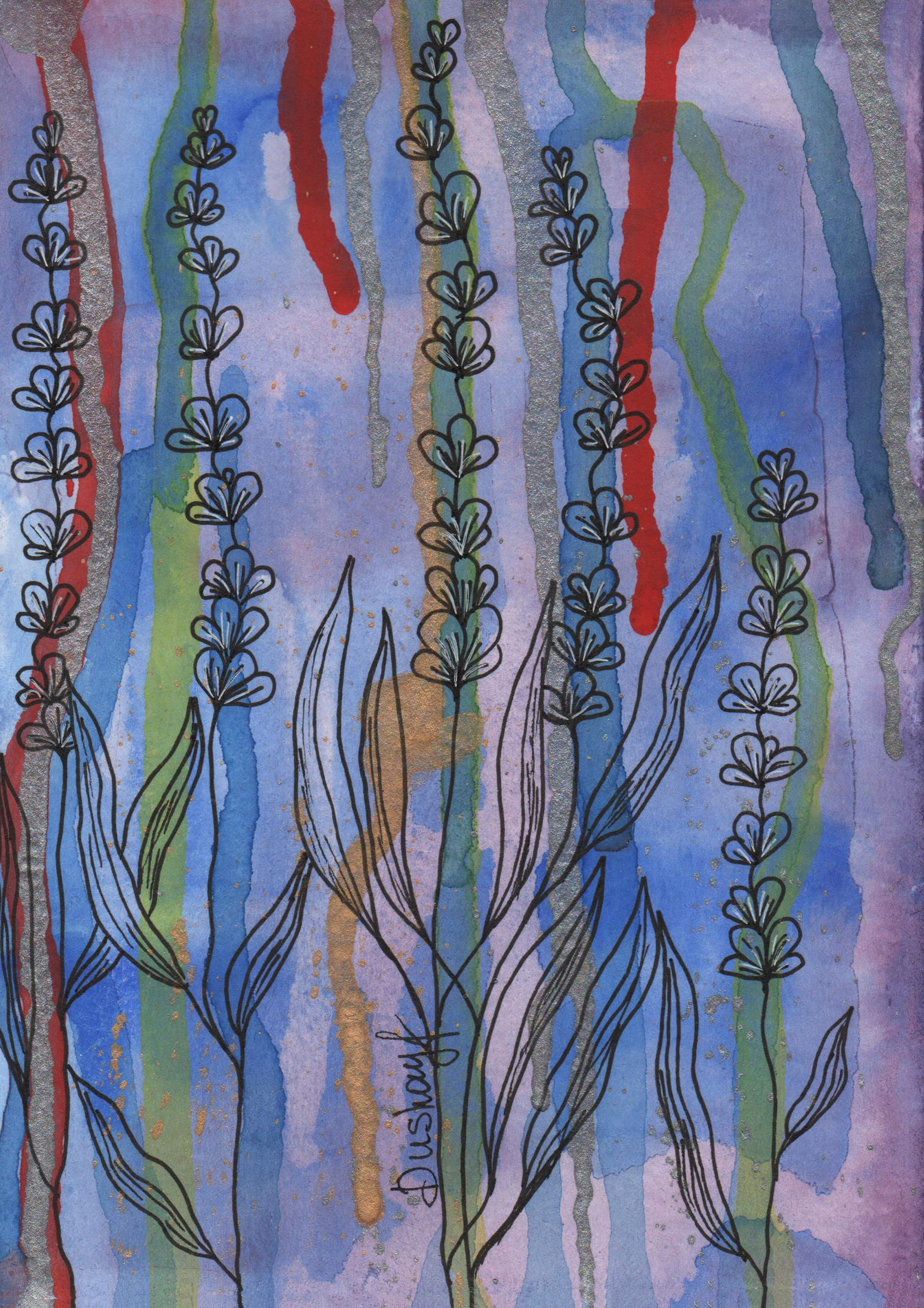 Эта экспрессивная акварель передаёт ботаническую сцену с высокими тонкими стеблями и вытянутыми листьями, поднимающимися через плавные каскады цвета. Фон объединяет прохладные оттенки синего, мягкой пурпурной гаммы, свежей зелени и яркие красные всплески, создавая живой визуальный ритм, который подчёркивает лёгкость и изящество ботанических линий. Это сочетание структуры и спонтанности придаёт работе игривый и мечтательный характер. Картина подойдёт коллекционерам современной флоральной иллюстрации, выразительной акварели и декора, вдохновлённого природой. Работа добавит в пространство лёгкость, креативность и цвет, её современная эстетика и яркое движение привлекут внимание как в минималистичном, так и в художественном интерьере.