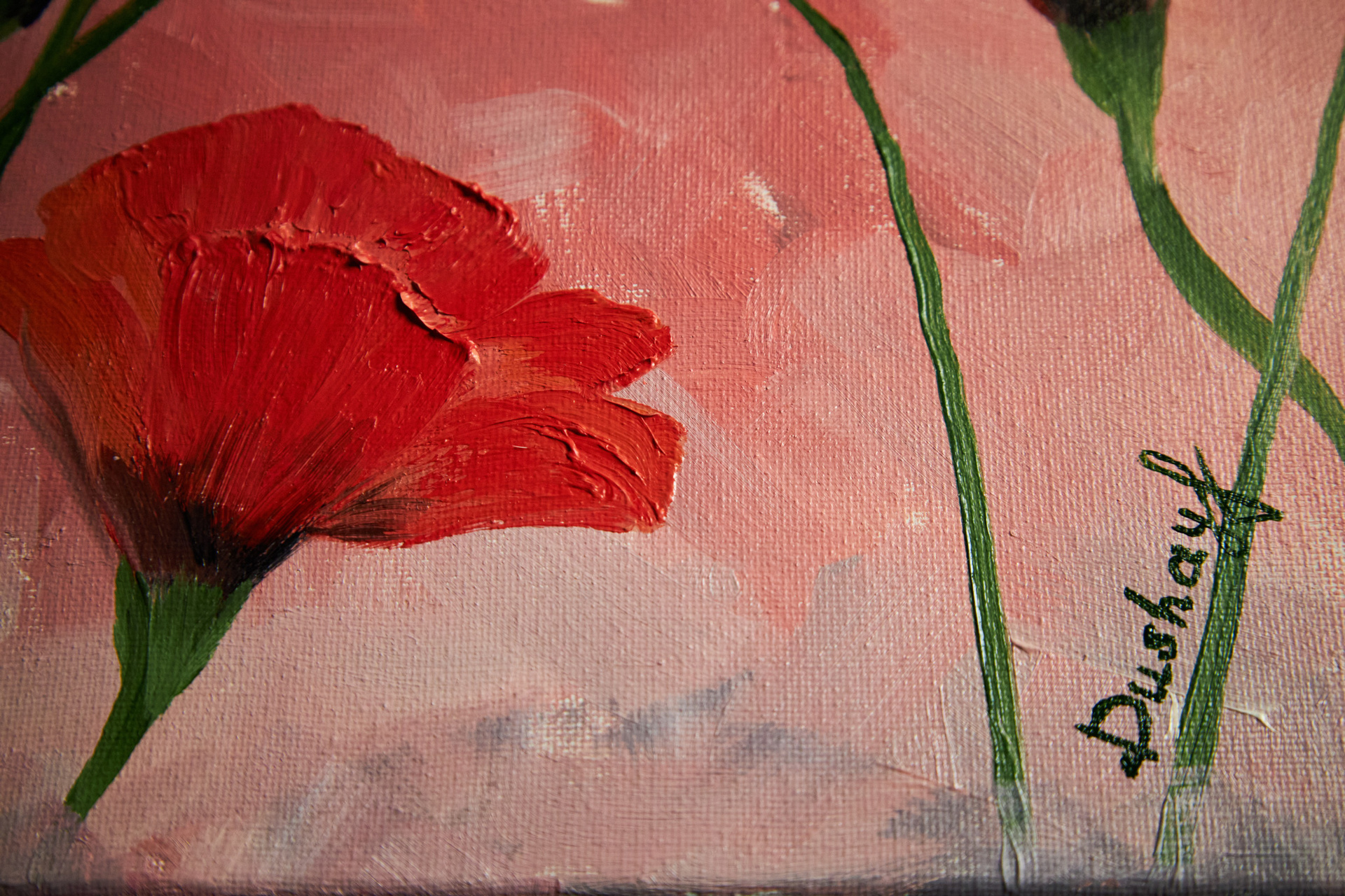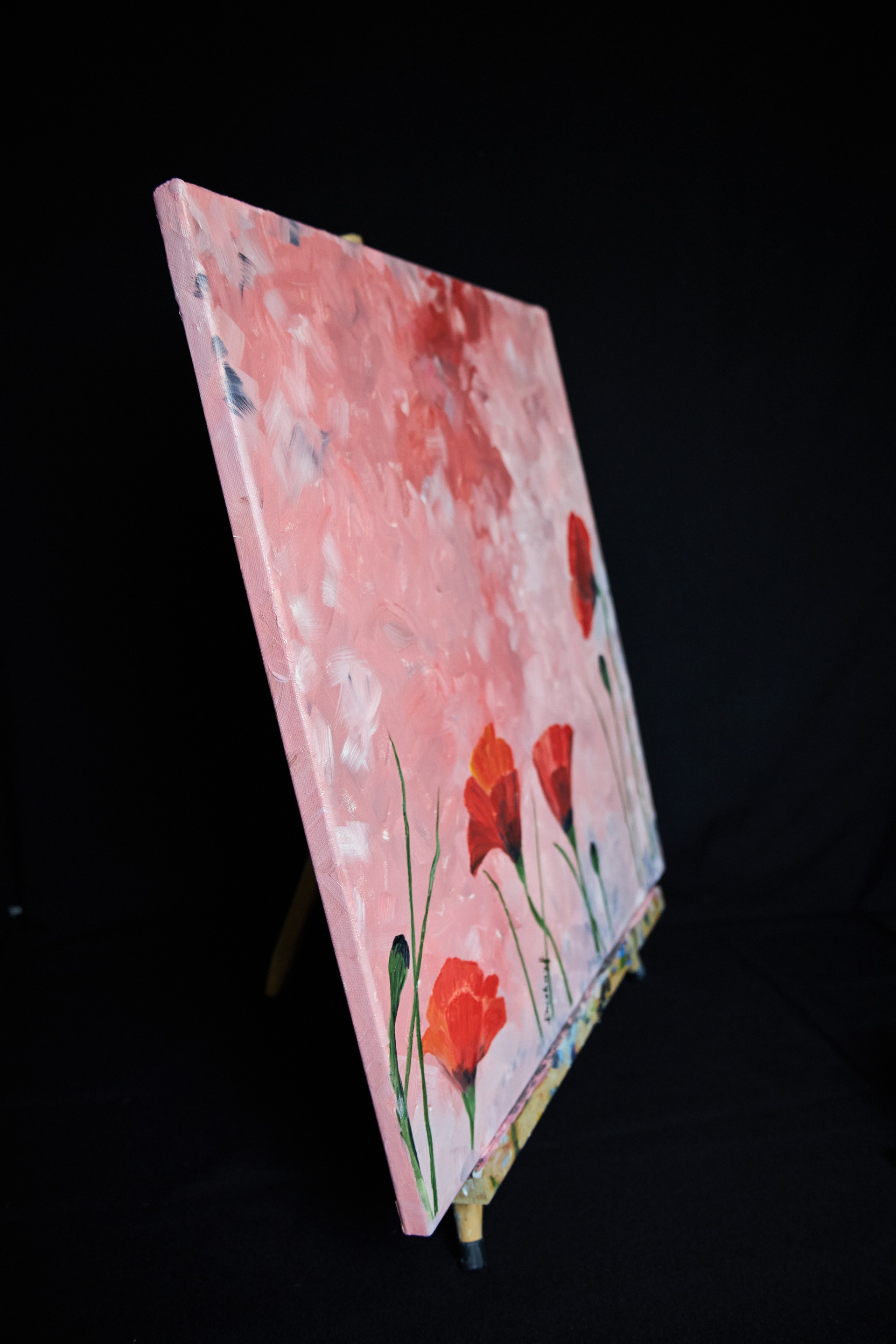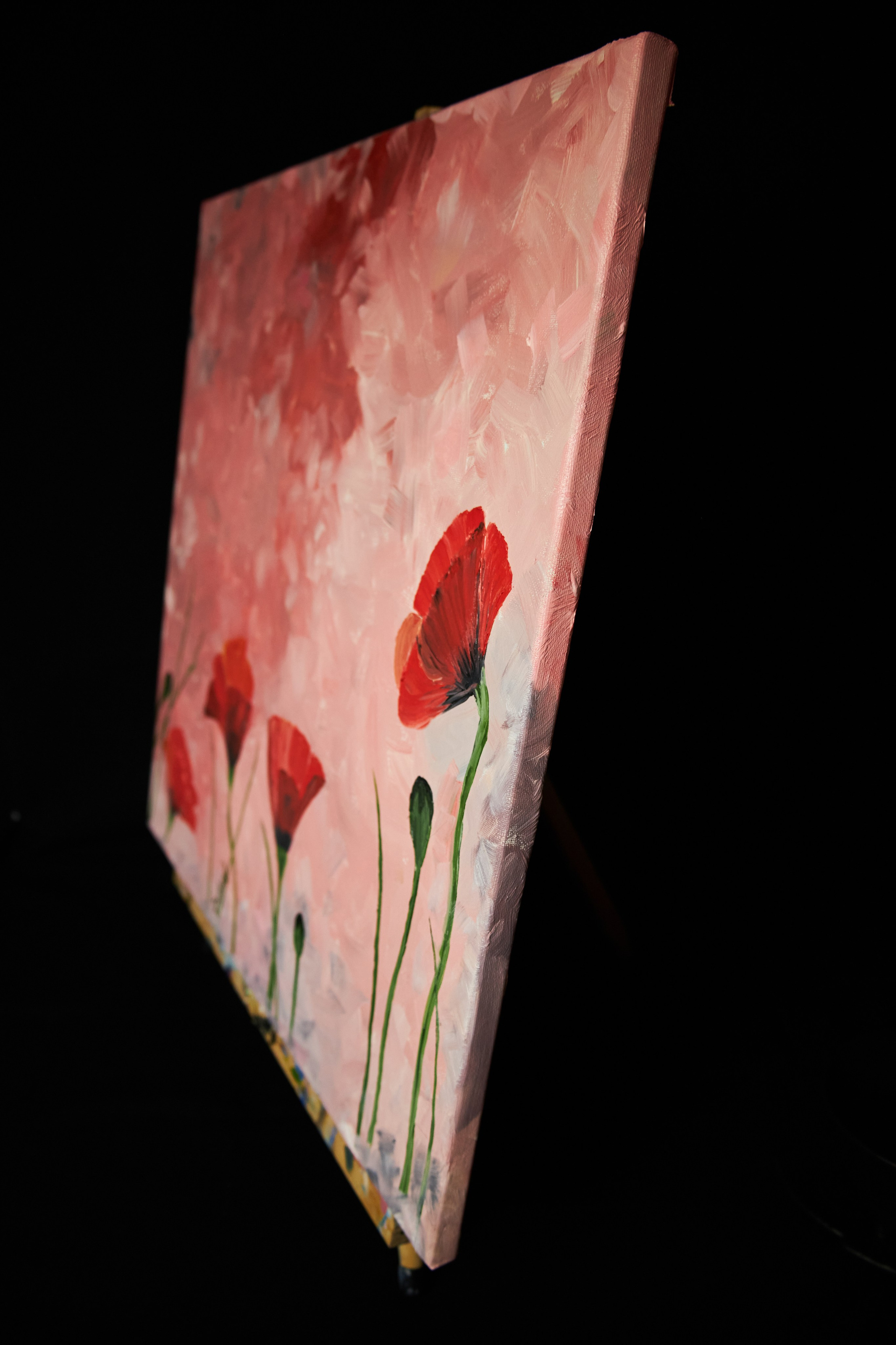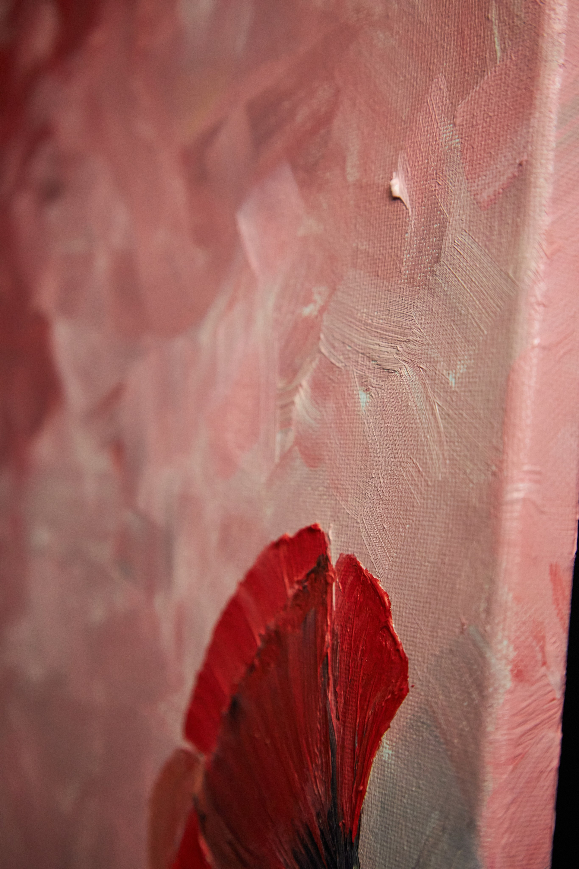 Red Poppies: Современная импрессионистская картина маслом с маками в розовых тонах