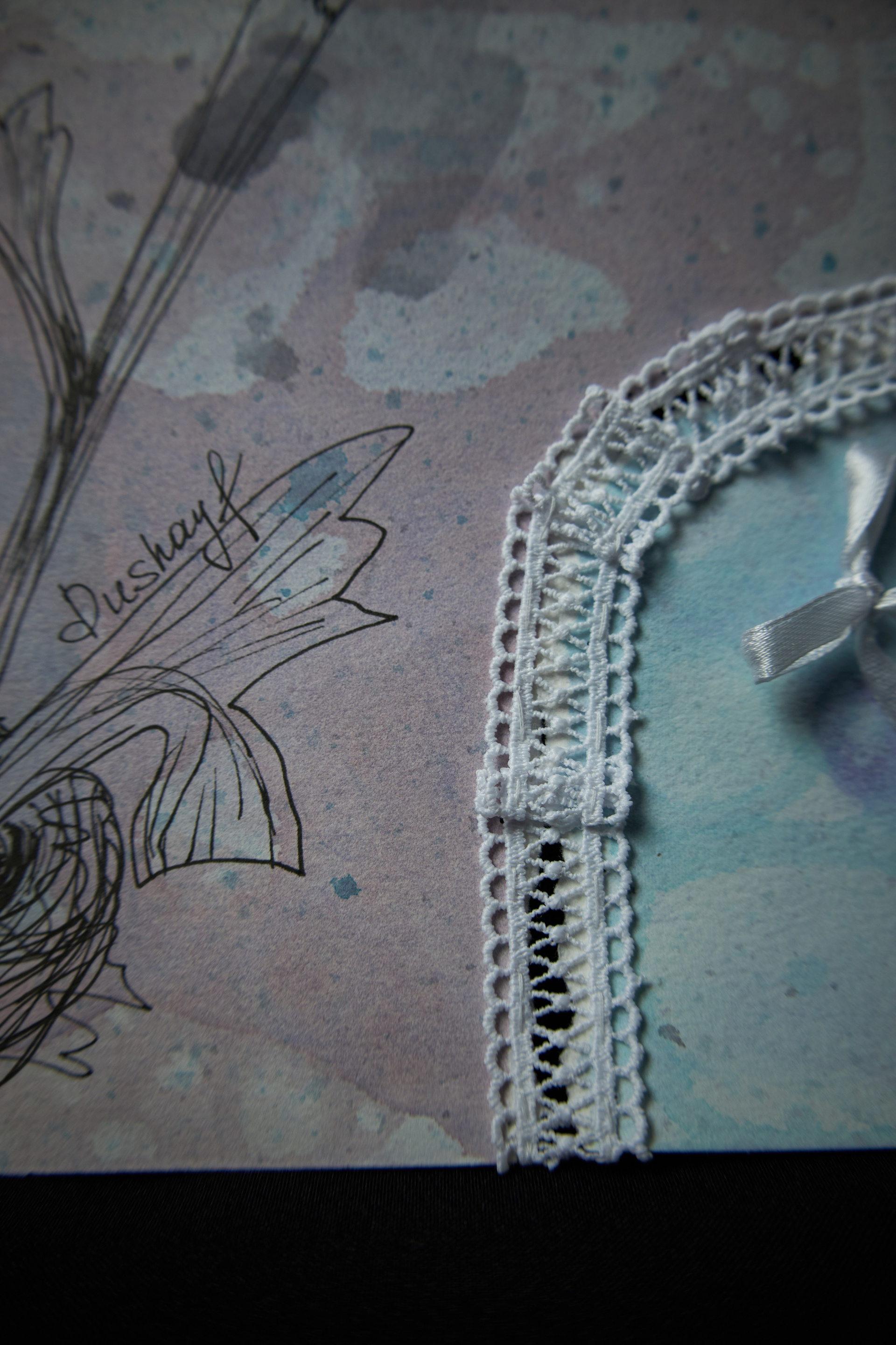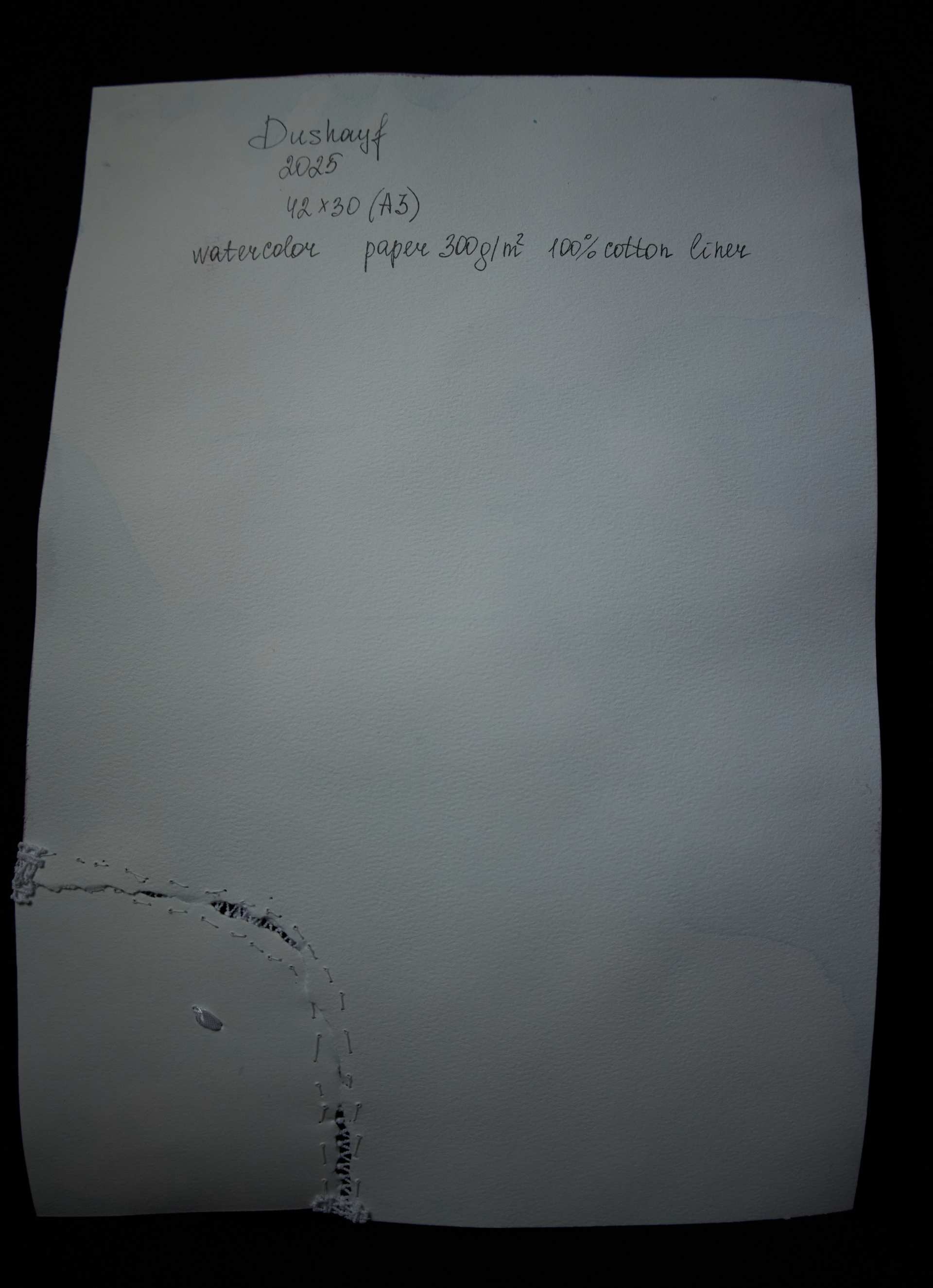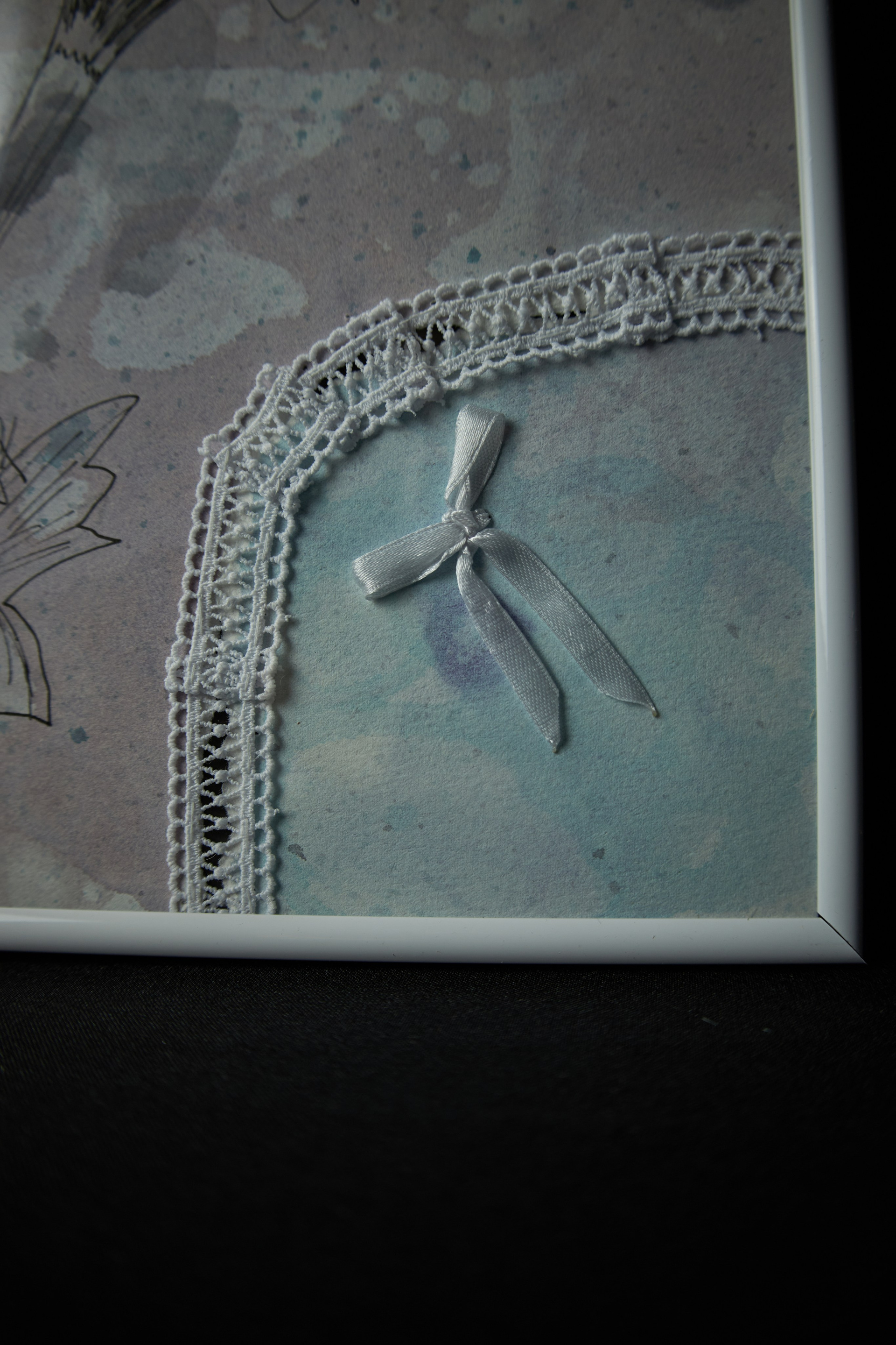 Media: Watercolor, water color paper 300g/m2 100% cotton, liner, textile, lace. Год создания 2025. Size: 420 × 297 (in a white frame) A3